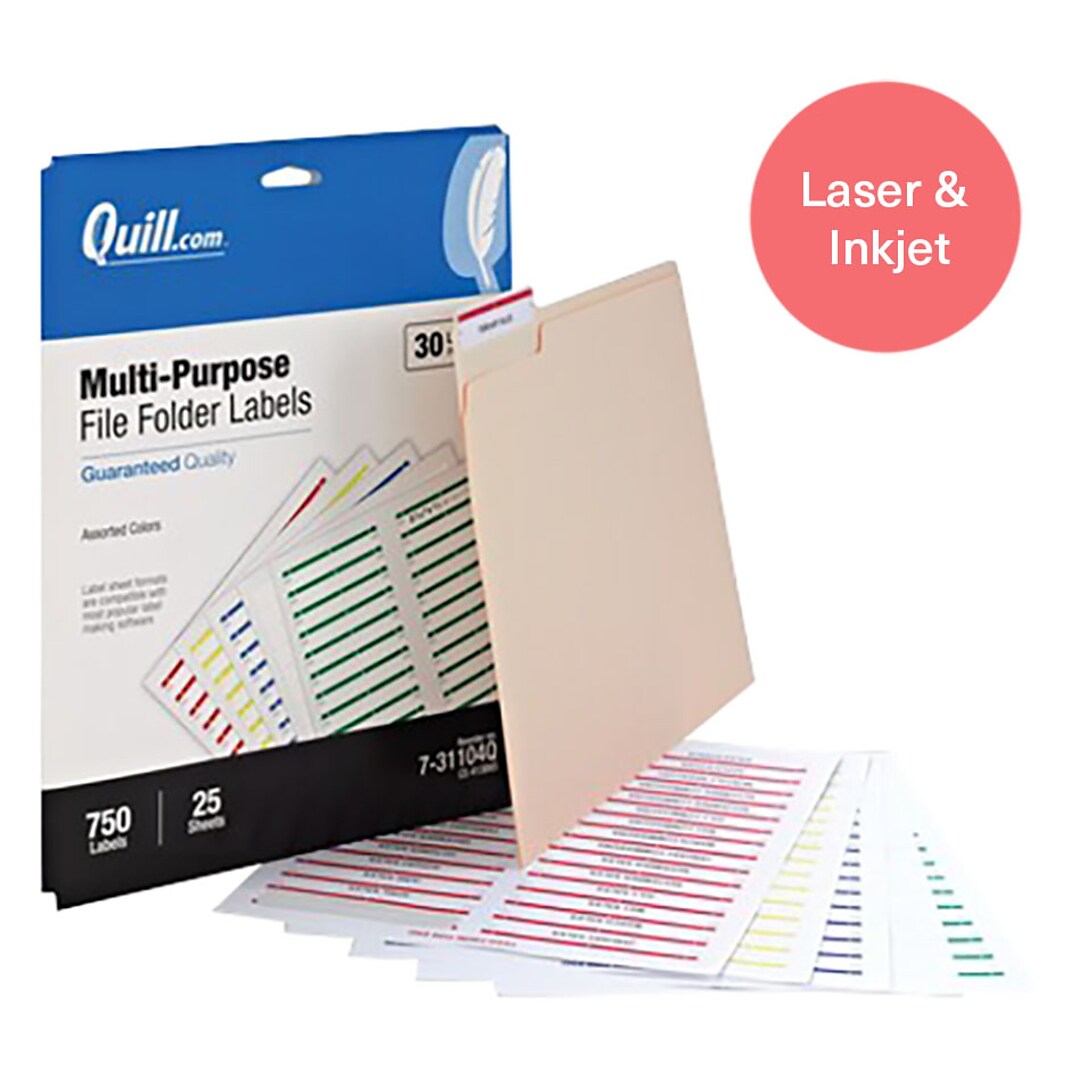 Quill Brand® Laser/Inkjet File Folder Label, 2/3" x 3-7/16", Assorted, 750 Labels (Compare to Avery 5266)