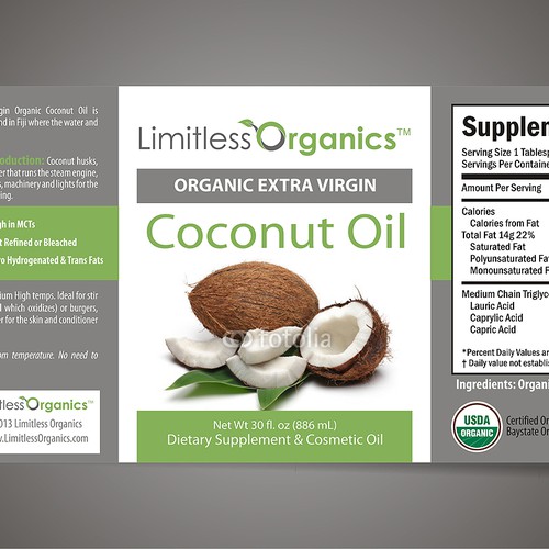 Virgin Coconut Oil Label | 81 Graphic Designs for a ... - DesignCrowd Virgin Coconut Oil Label A business in Philippines needed a graphic design and received 81 Bold, Playful graphic designs from 39 designers 81 Designs 39 Designers $290 Budget Sign Up For Free Giovanni Serbia Work with this designer Sergio Coelho Brazil Buy a design like this Deziners Zone Pakistan Buy a design like this Priyo Subarkah Indonesia Cold Pressed Organic Virgin Coconut Oil - The Labels AVIA Cold Pressed Organic Virgin Coconut Oil RM 45.00 or 3 payments of RM 15.00 with Healthy dietary supplement 100% natural No chemicals No mercury Safe for all ages and skin types Benefits 1. Strengthens immune system 2. Enhances metabolic rate 3. Improves disgestion 4. Boosts brain function 5. Improves dental quality and bone strength 6.